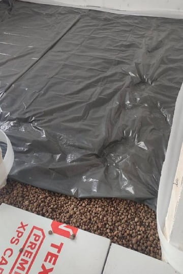 Как мы подготавливаем пол к залитию стяжки? Самое главное это вымести мусор. Если залитие будет происходить мокрой стяжкой, без грунтовки никуда не обойтись. Оставление разметоток также является важнейшим мероприятием. Укладка слоя пленки или изолона.